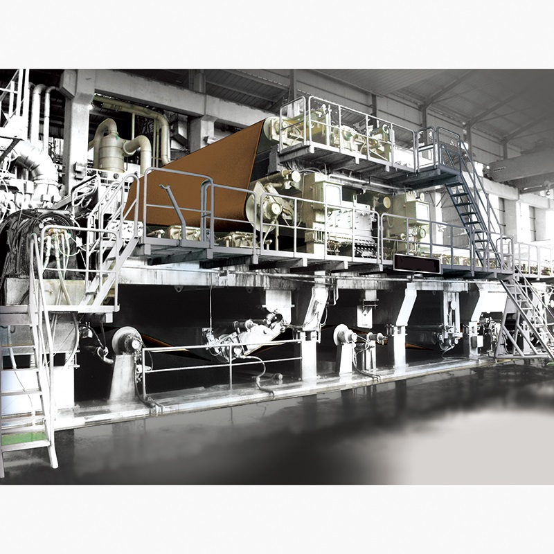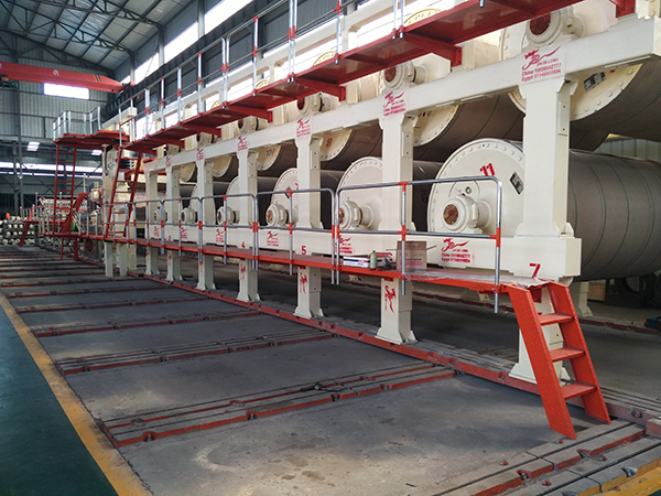 造紙機: 使紙漿形成紙幅的分部聯動的全套設備,包括流漿箱、網部、壓榨部、烘干部、壓光機、卷紙機